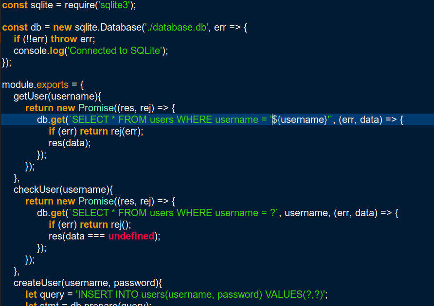 db.get(`SELECT * FROM users WHERE username = ?`, username)